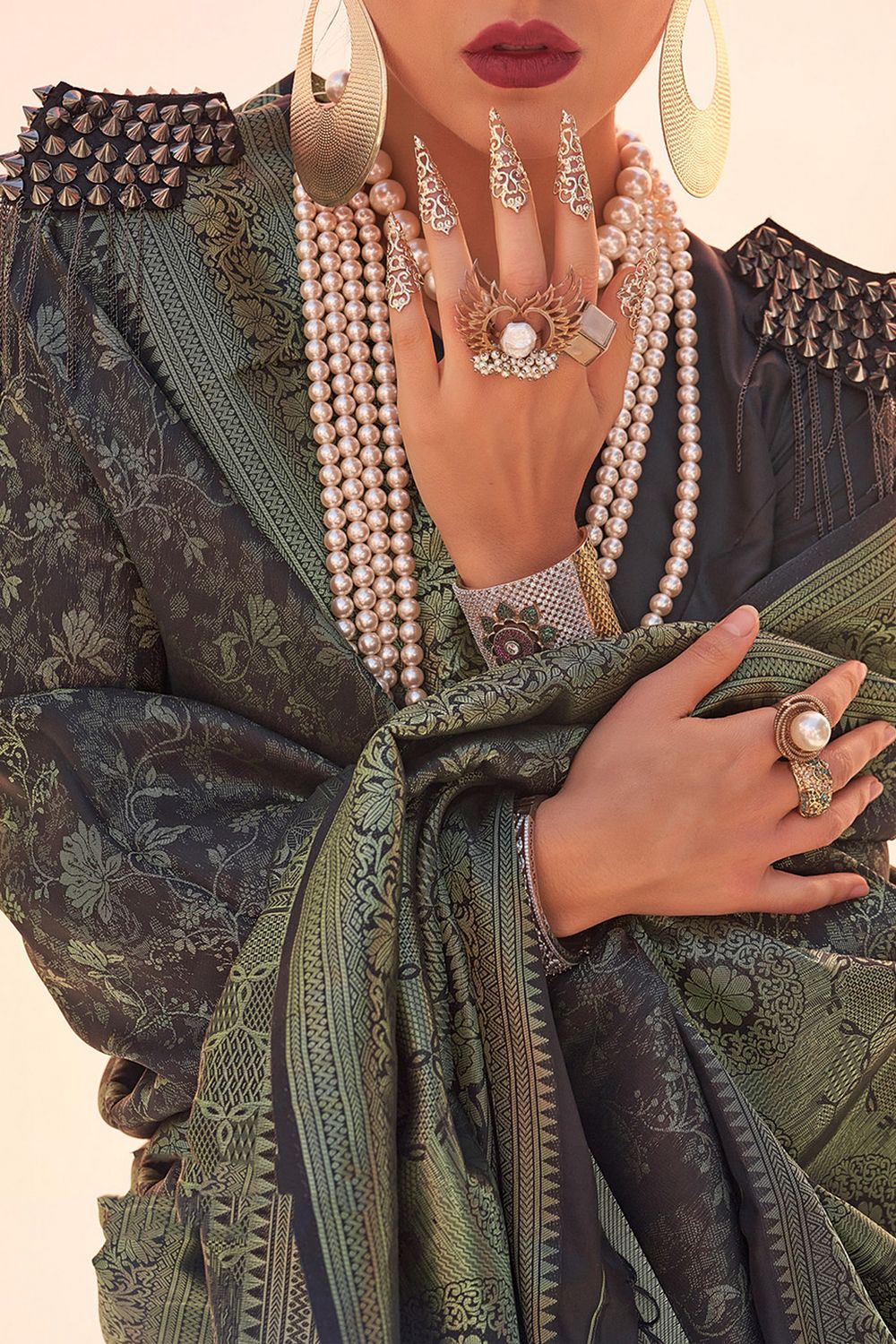 - Shoulder Drape Style: Standard Open/Pleated/Gujarati