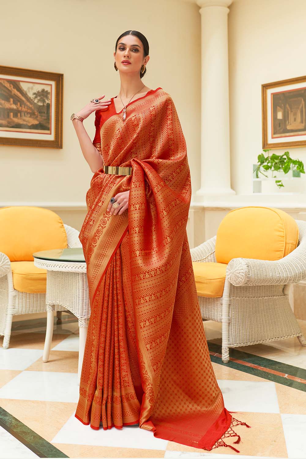 Ishika Red Sequin Silk Weaving One Minute Saree