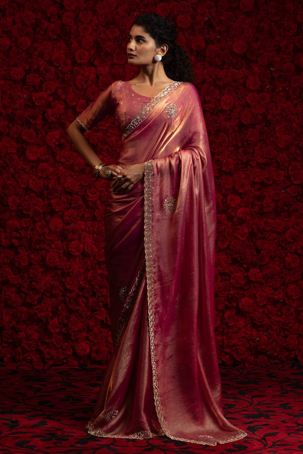 Aria Rose Pink Chiffon Saree with Embellished Border Ready to Wear One Minute Saree