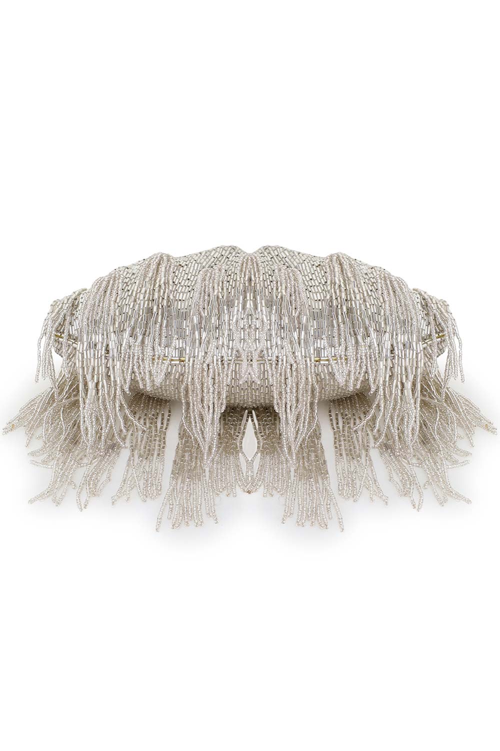 You will be the star of the evening with this tasselled clutch. This silver embellished clutch is fabricated from the finest faux silk available and the stylish wrist chain adds the right amount of bling. It is really sturdy too so you will never be afraid of it breaking apart. It is quite spacious to hold a phone & makeup and a wallet.