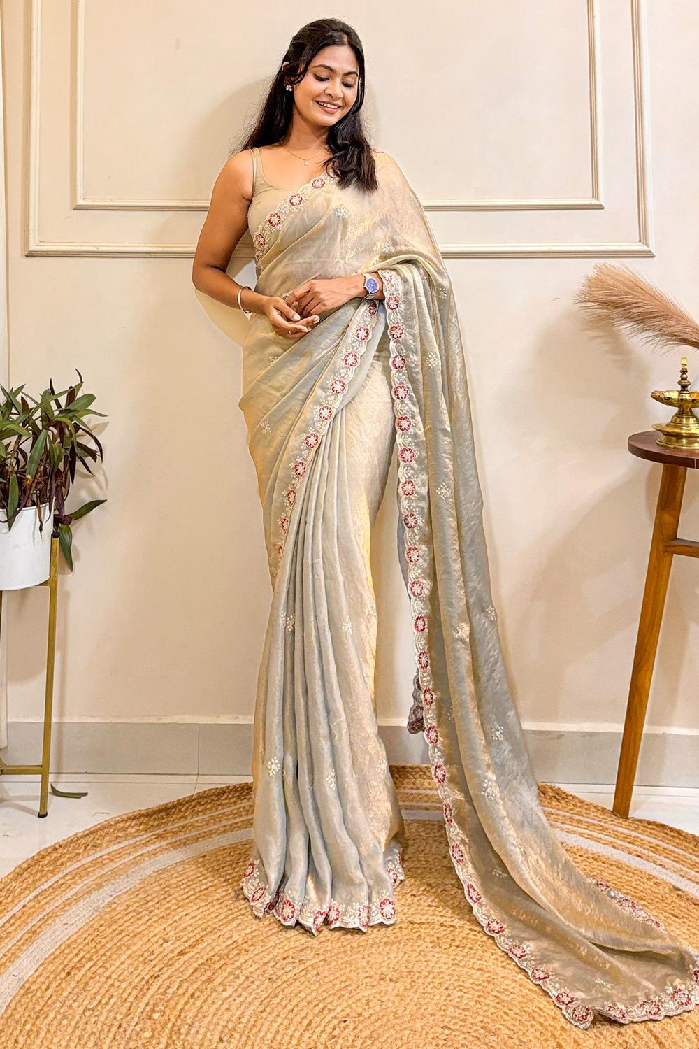 Shop for stunning embroidered sarees online at Oneminutesaree