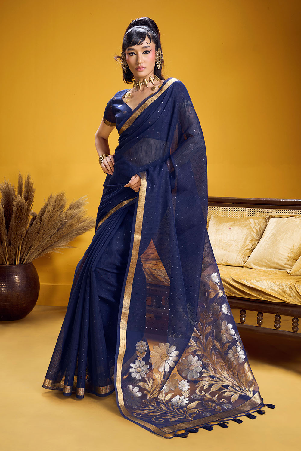 Neerja Navy Blue Munga Silk Zari Weaving Ready to Wear One Minute Saree