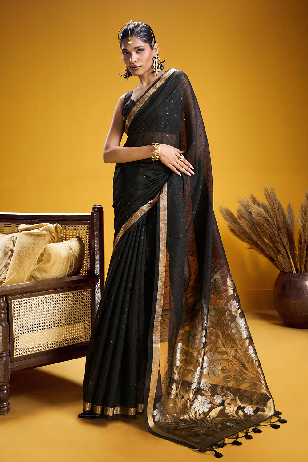 Neerja Elegant Black Munga Silk Zari Weaving Ready to Wear One Minute Saree