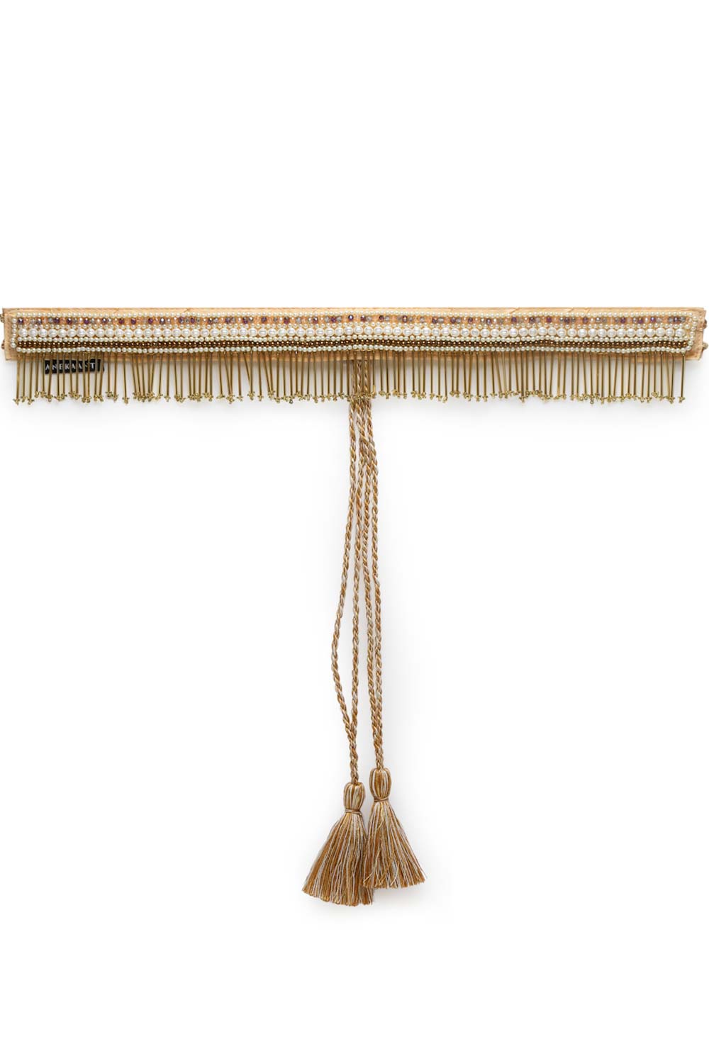 Buy Striped Tasseled Embellished Saree Belt in White & Gold Online - Back