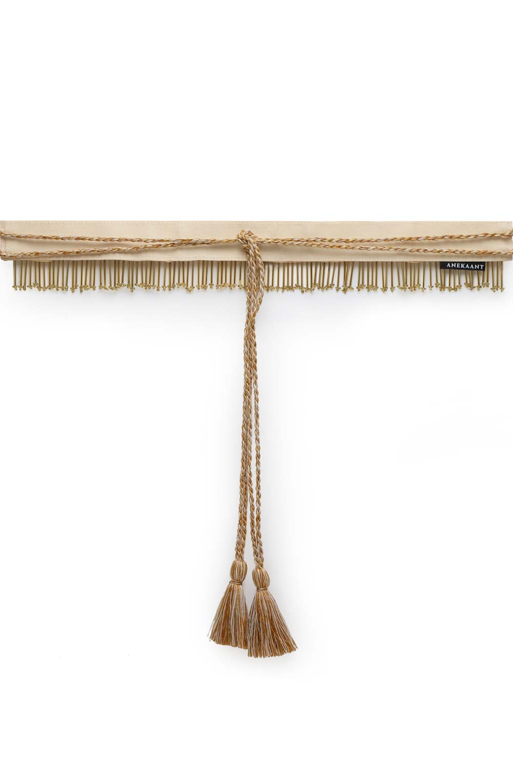 Get ready to buckle up your style with Anekaant's White & Gold Embellished Belt. It comes in a Cotton Poplin base with a Hand Embellished design and a beautiful tasselled knot that makes it easily adjustable for all waist sizes. Style this belt with your favourite pair of denims & baggy shirts or any classic dress to get a chic look.
