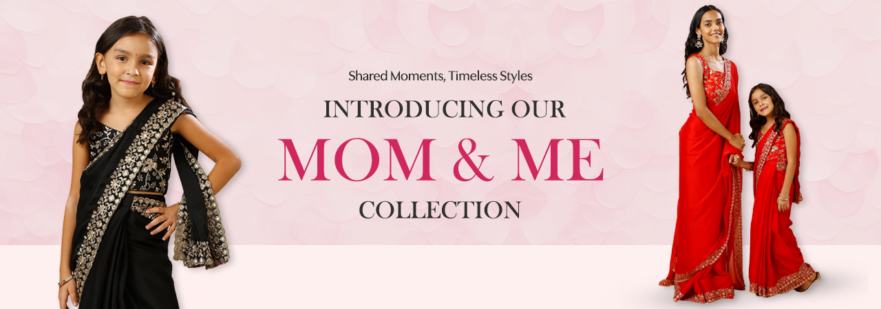 Therese Black Art Silk Floral Wrap Around Saree Skirt For Mom & Me
