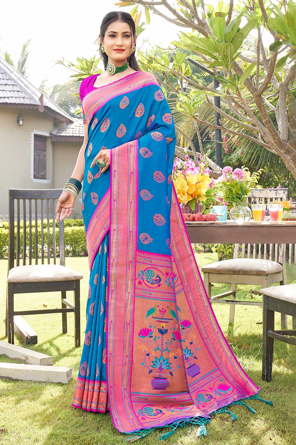 Buy Belisse Blue Paithani Art Silk One Minute Saree Online - One Minute Saree