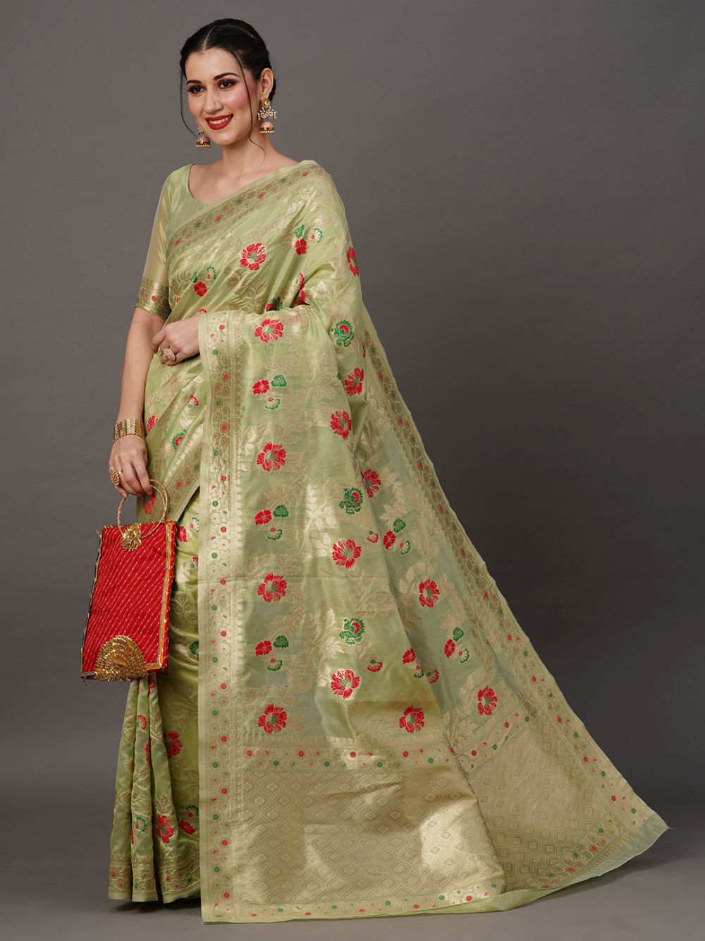 Rosa Lime Green Organza Banarasi One Minute Saree