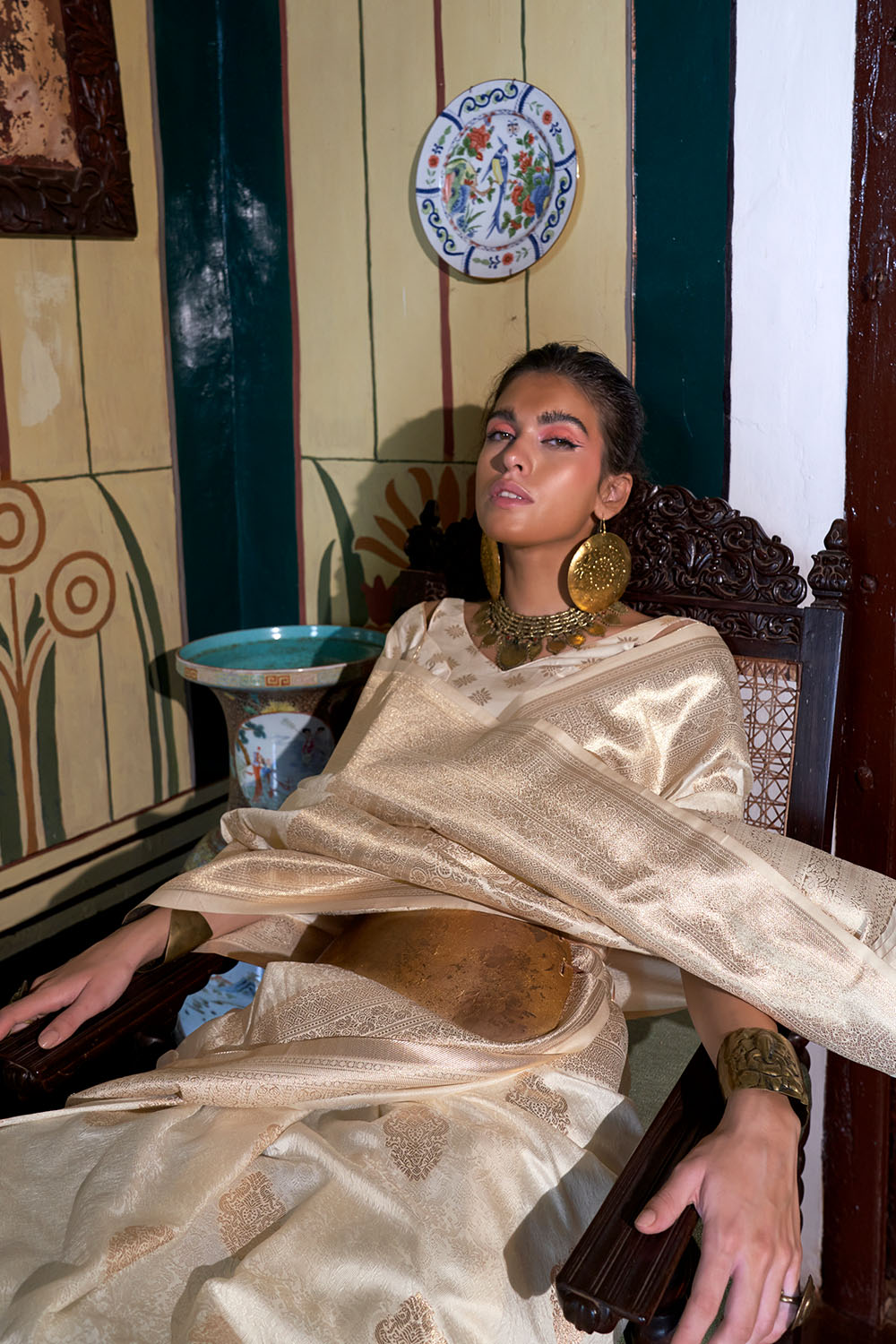Elegant Cream Saree by One Minute Saree – Luxurious Fabric for Every Occasion