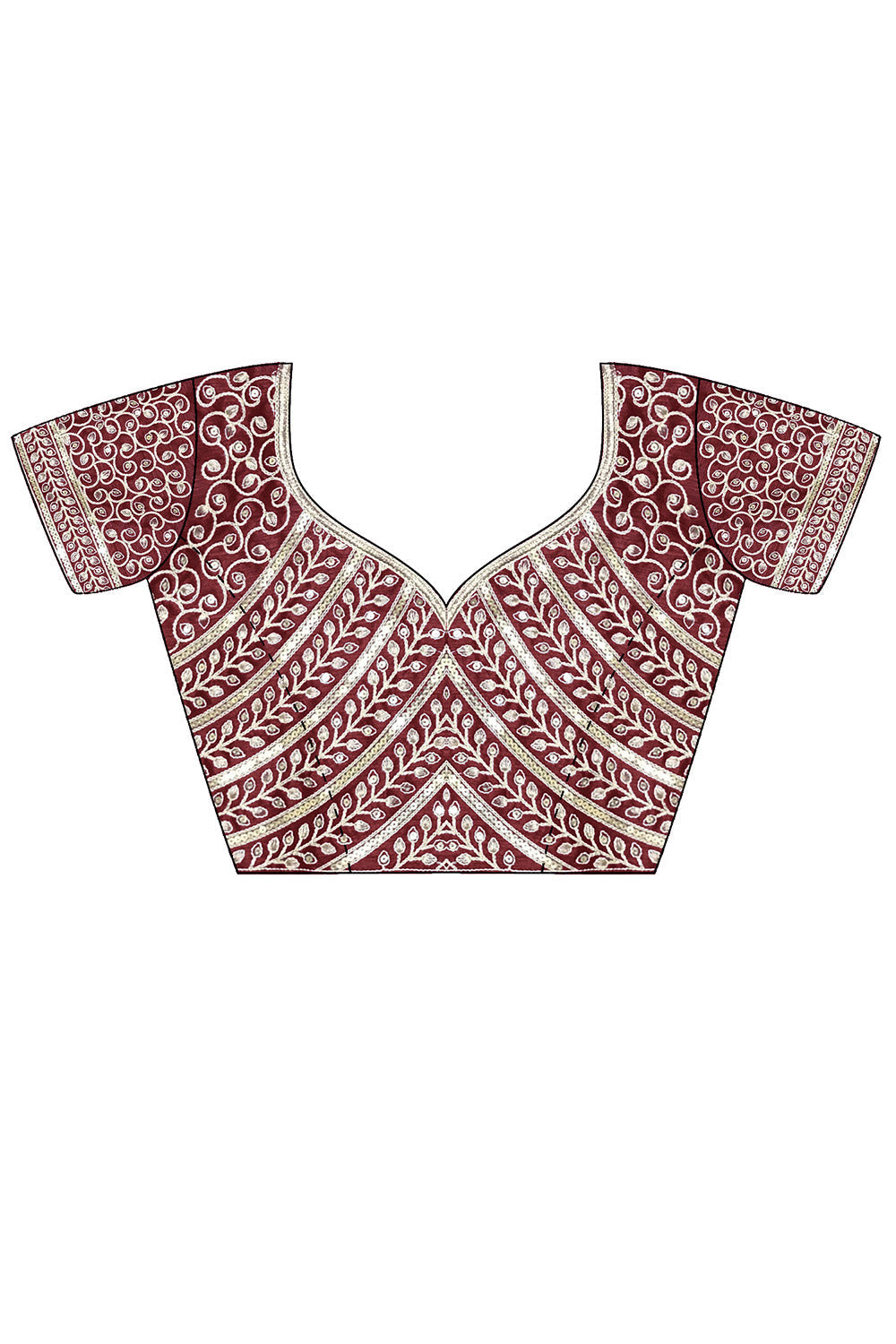 - Color & Fabric: Maroon/Organza