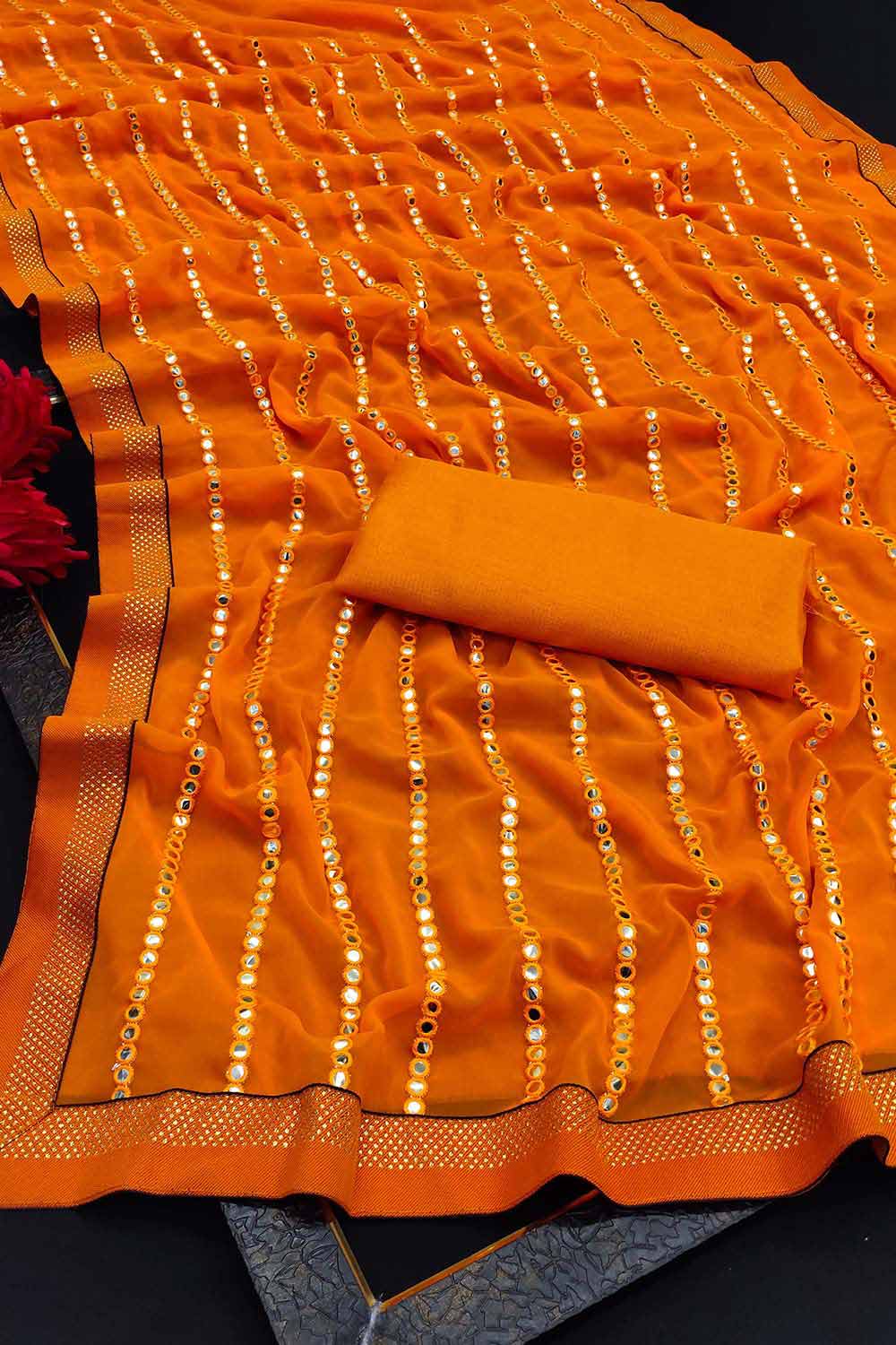 Shop Sameera Yellow Georgette Mirror Sequence One Minute Saree at best offer at our  Store - One Minute Saree