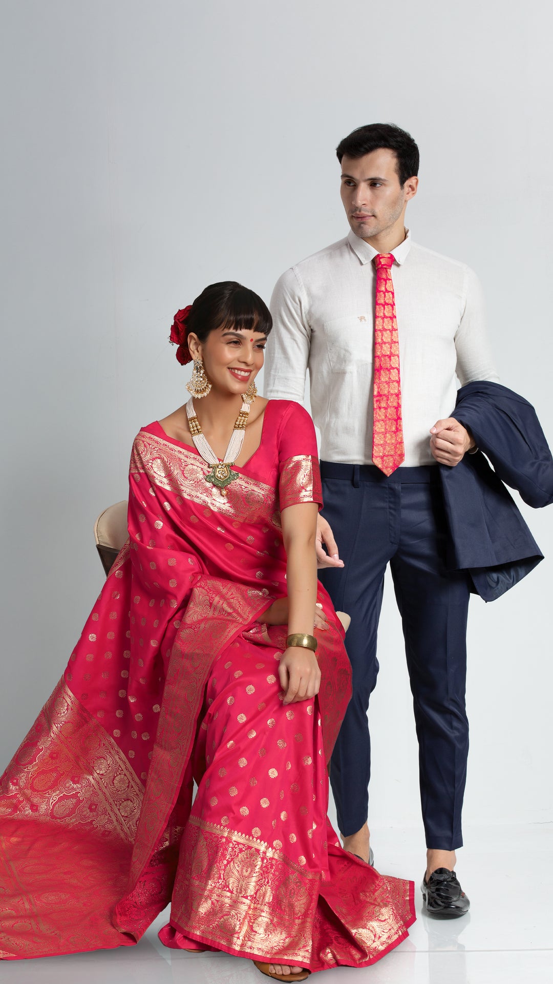 From the luxurious charm of banarasi sarees to the understated charm of organza sarees, find the perfect saree that tells your unique story. Each piece represents the energy and cultural traditions of Indian weddings, curated to suit every style, mood, and ceremony.