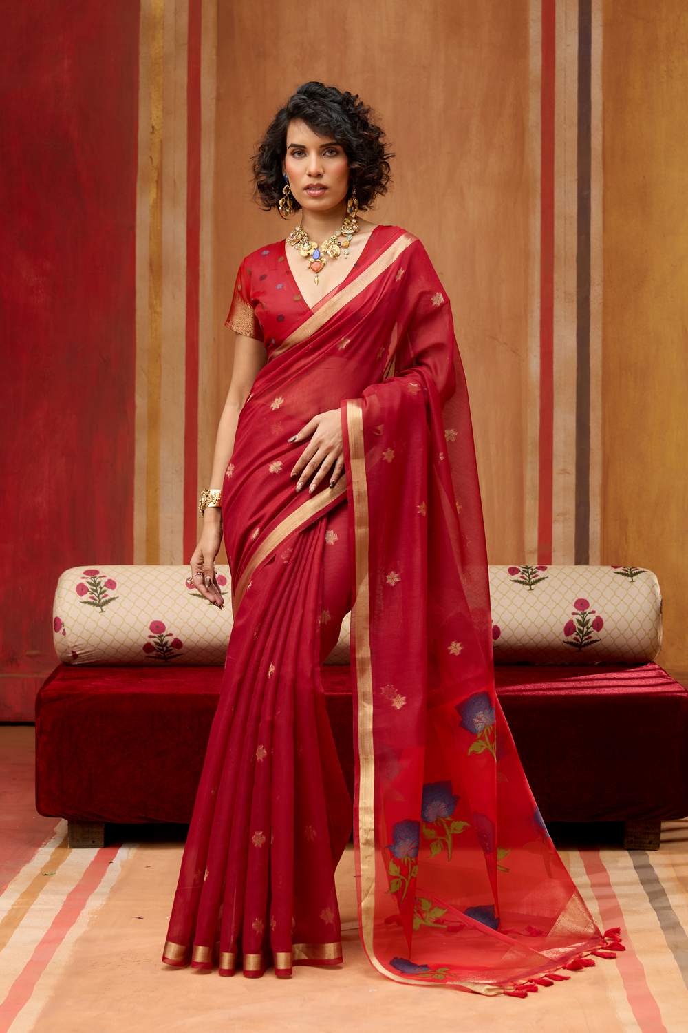 Elegant Red Handloom woven Pure Munga Cotton Saree by One Minute Saree – Luxurious Fabric for Every Occasion