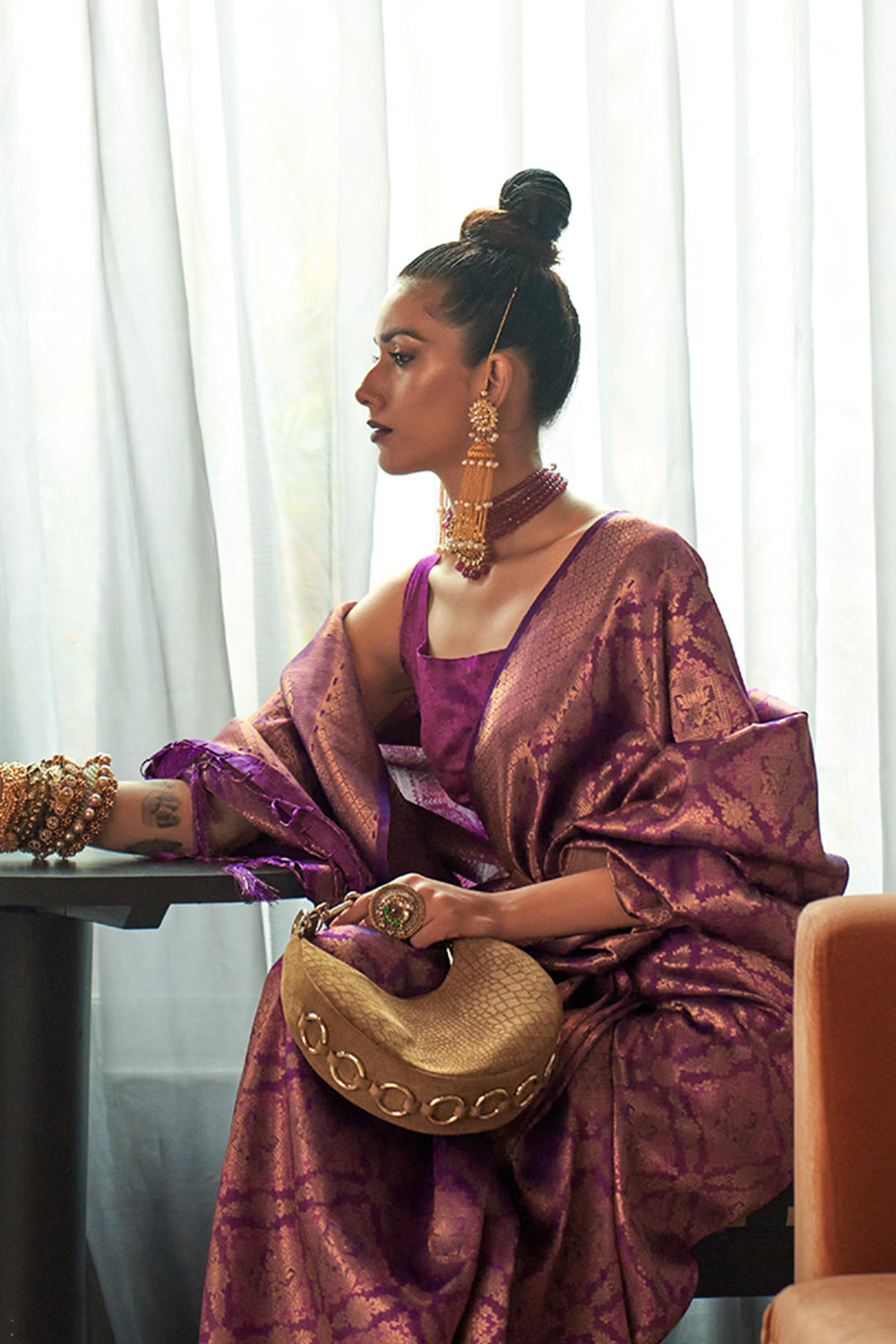 Alina Purple Silk Woven Ready to Wear One Minute Saree