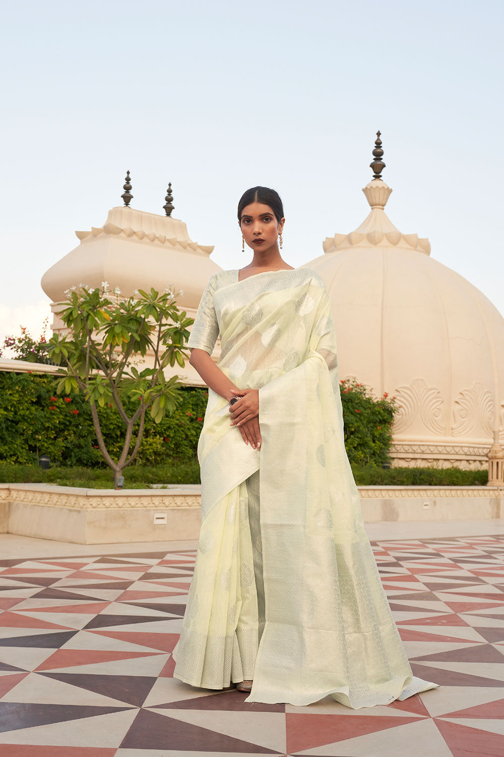 Aiya Off White Linen Handloom Weaving One Minute Saree
