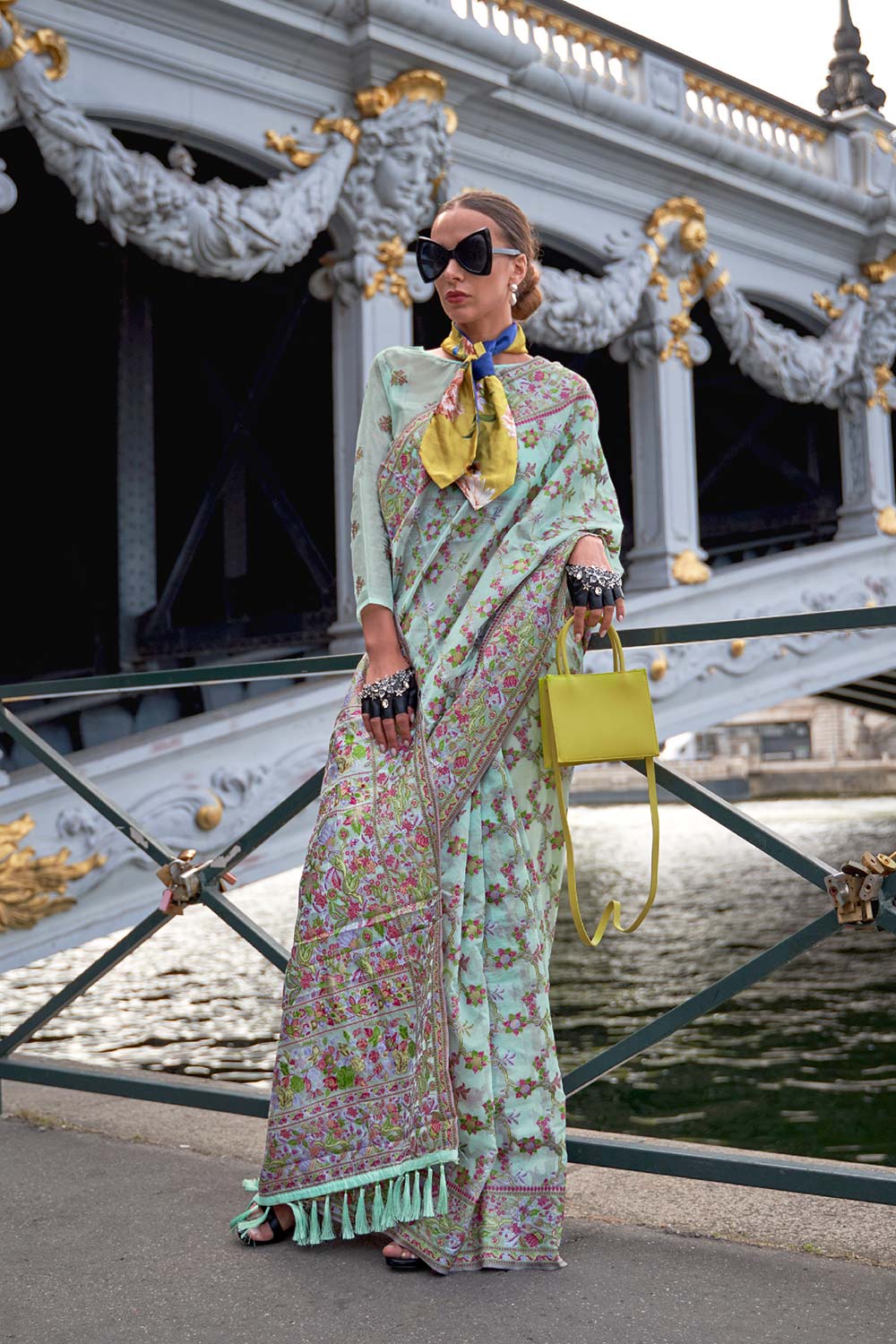 Discover artistry in fabric with the Shirin Silk Organza Embroidered One Minute Saree. The delicate embroidery adds a touch of sophistication, while the lightweight silk organza ensures a graceful flow for any event.