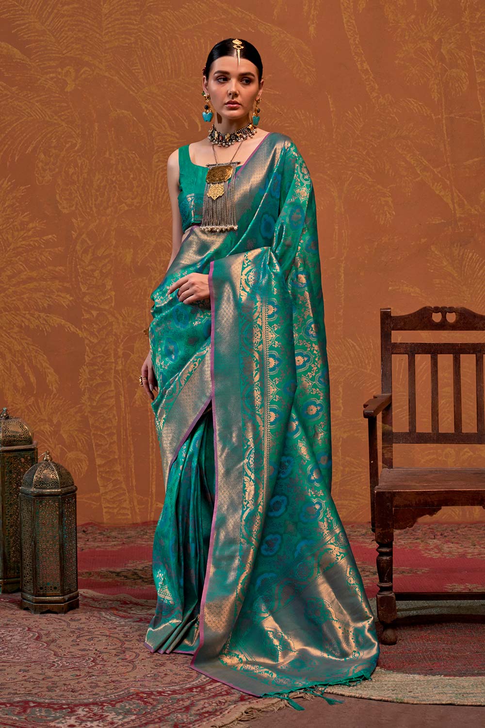 Transform your look in seconds with the Petra Silk Foil Print Floral One Minute Saree. The stunning foil print and exquisite floral design create a captivating appearance, perfect for any festive occasion.
